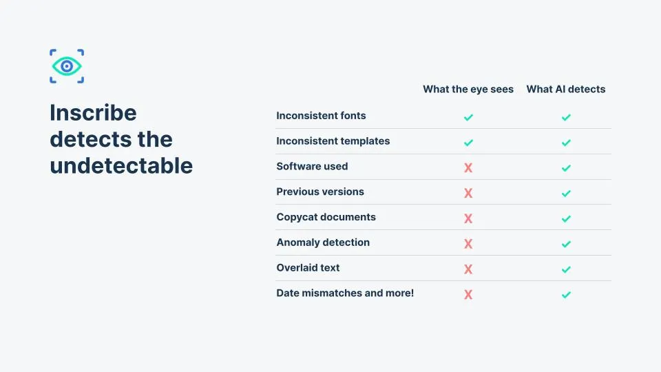 That’s where Inscribe comes in. We care deeply about the problem of document fraud and are dedicated to helping companies outsmart fraudsters with AI. We have an experienced team of data scientists and engineers who operate like investigators to build models that unlock invisible document fraud signals using the latest advancements in AI technology.