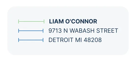 Indicates if a name or address is misaligned by examining where the first character starts. This is a strong signal of fraud.