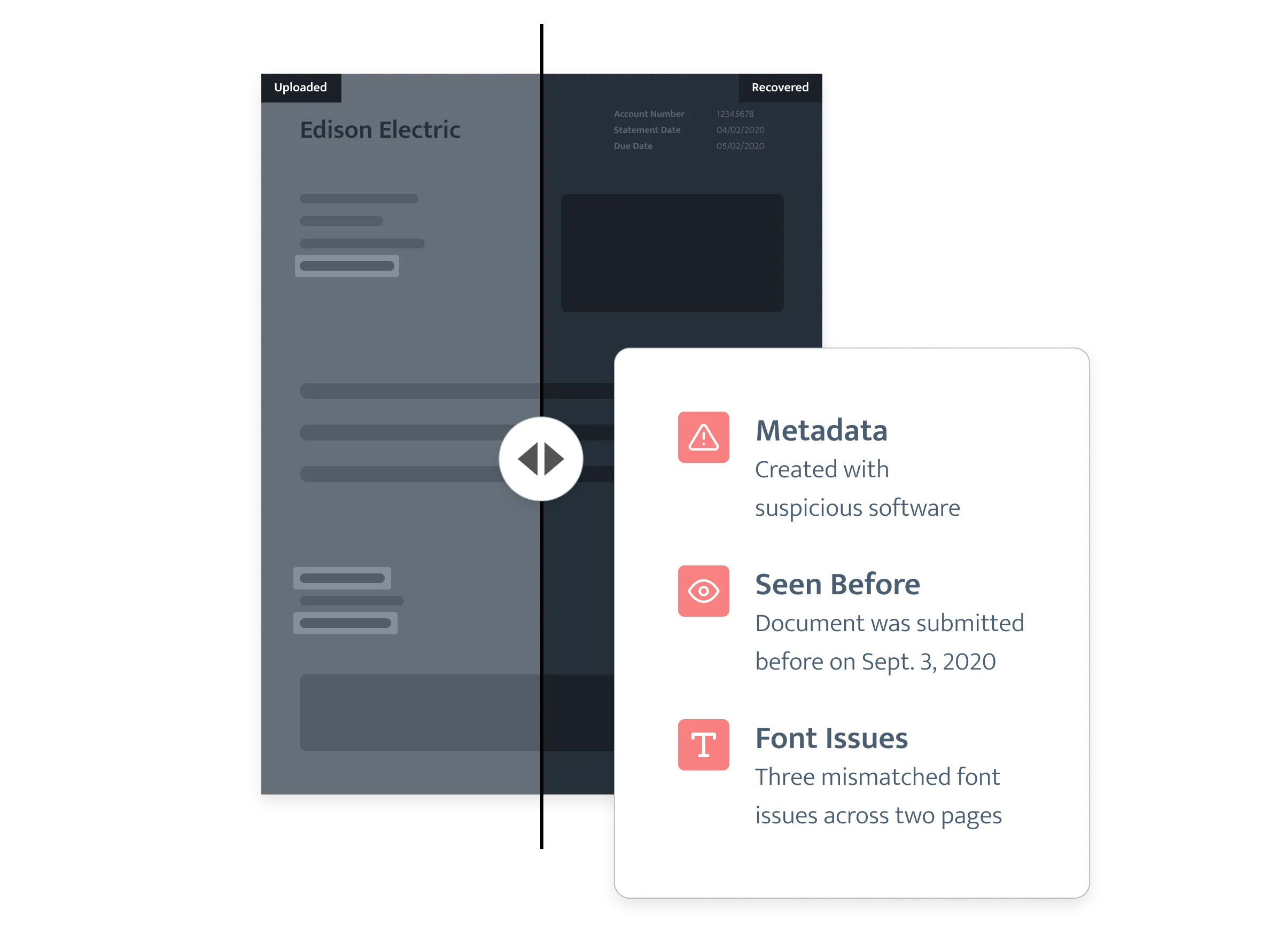 When underwriters use Inscribe to detect fraud, they are able to justify every ‘accept’ and ‘reject’ decision and maintain a detailed audit trail. Inscribe makes fact-based calls an easy reality by giving underwriters specific detail on what’s been forged in a document, if a document was created using a fraudulent template purchased online, if any software was used to modify information within a document, and more.