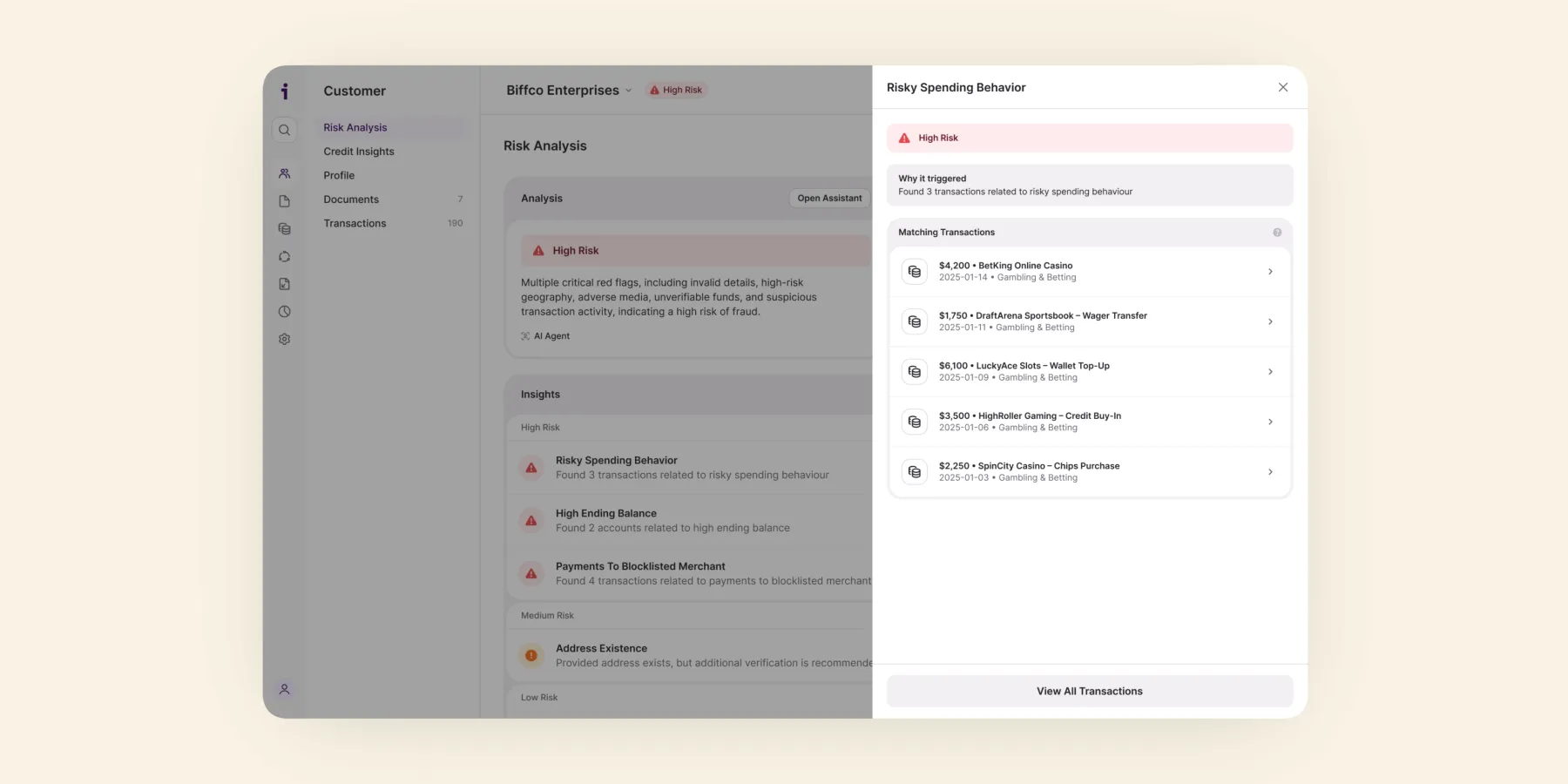 This feature gives you greater visibility and control over the specific risks you care about. With configurable signals, you can define what risky looks like in your transaction and balance data and review it in a way that fits how your team already works.