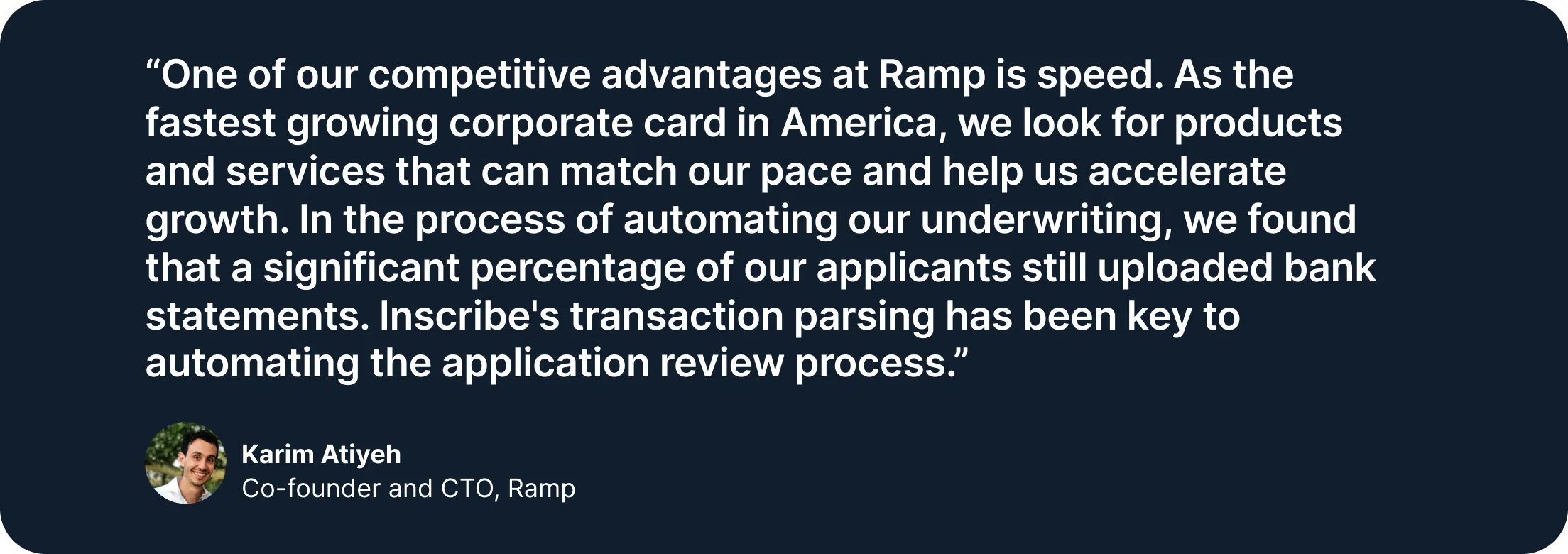 The confidence score can also be used to automate the transaction results via our decision engine and determine when they want to conduct a manual review. Fast-growing fintechs like Ramp use transaction parsing to reliably automate their application review process: