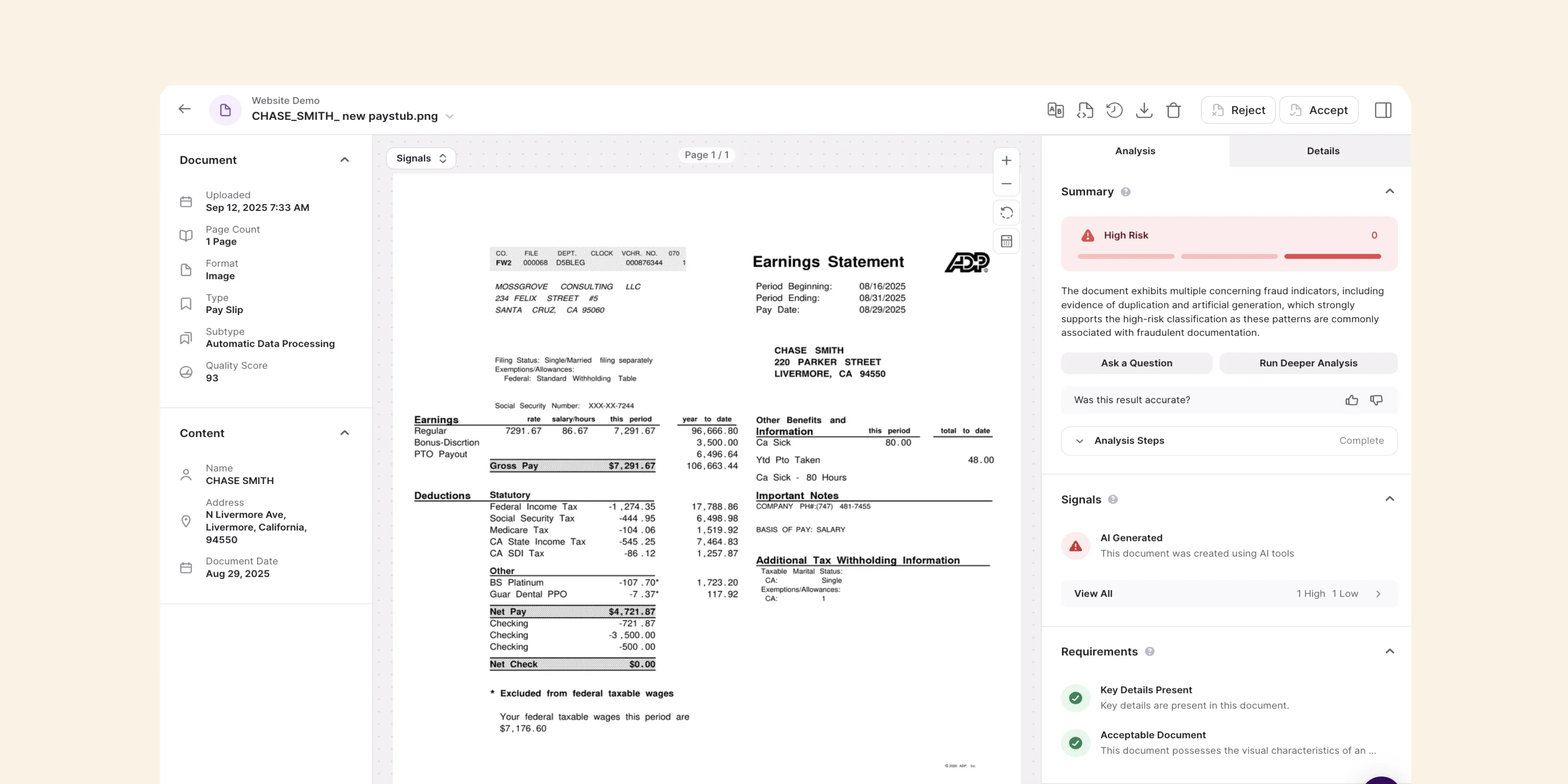During a recent interview, Jorge Cortes, VP of Enterprise Risk Management at Kinecta, explained how these capabilities have become critical as fraudulent documents grow more convincing with AI, helping his team spot risks that would otherwise slip by.