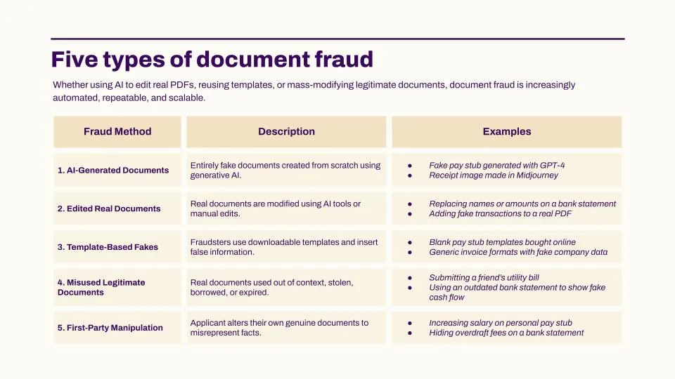 These are the five types of document fraud we see most often today. And more importantly, here’s how AI Agents are adapting to stop them.